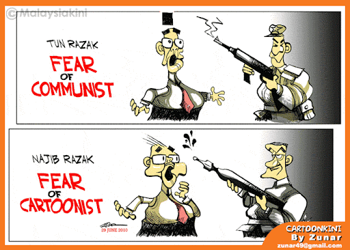 Last Friday, police detained political cartoonist Zulkifli Anwar Ulhaque -- better known as Zunar -- over his new comic book, which has a caricature of Najib's wife on the front cover and contains cartoons on numerous controversial issues such as Anwar's sodomy trial and police shootings.